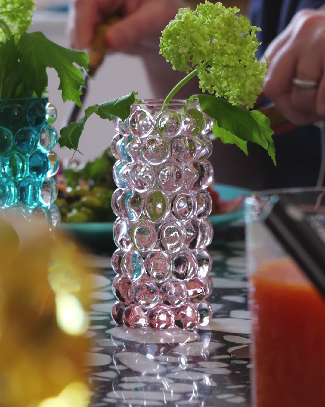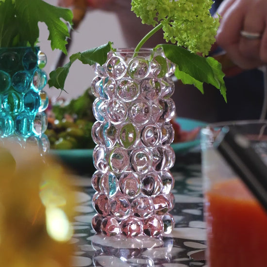 Hurricane Boule Mini ist eine wunderschöne kleine Vase, die in Böhmen, der Heimat der weltbesten Glasbläser, mundgeblasen wird. Die Blasen, die in einer gusseisernen Form hergestellt werden, verleihen Hurricane Boule sein eigenes, einzigartiges optisches Muster und ein luxuriöses, schweres Gefühl.