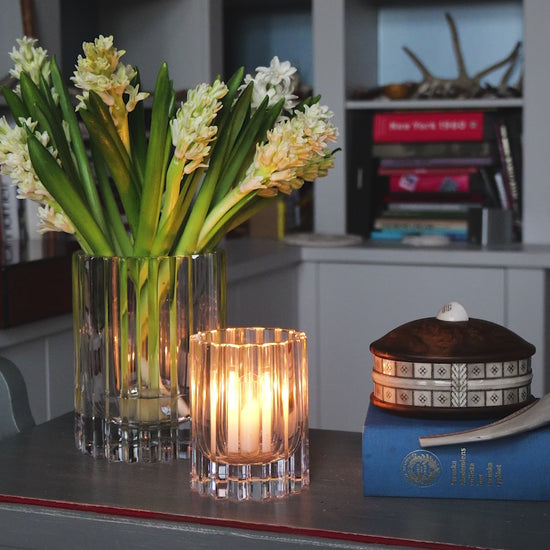 Verleihen Sie Ihrem Zuhause mit der Crystal Hurricane Lamp ein luxuriöses Finish. Das aus Kristall gefertigte Gefäß verfügt über tiefe Schnitte, die vom Vintage-Design inspiriert sind und von erfahrenen böhmischen Handwerkern geschnitten wurden. Perfekt zum Befüllen mit einer Kerze, um eine gemütliche Umgebung zu schaffen, zum Aufstellen auf einem Kaminsims oder auf einem Esstisch, um ein Interieur aufzuwerten. Mischen Sie es mit den anderen Größen und Farben, um Ihrem Zuhause ein individuelles Ambiente zu verleihen.