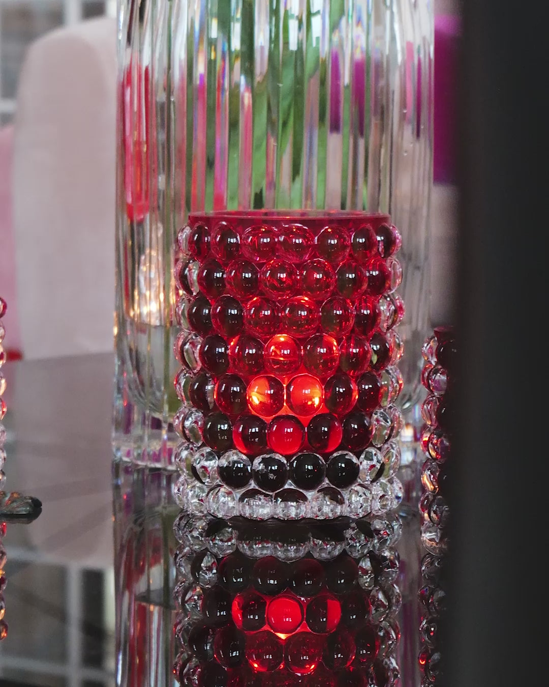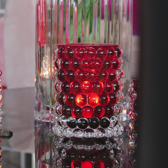 Hurricane Boule wird in Böhmen, der Heimat der weltbesten Glasbläser, mundgeblasen. Die Blasen, die in einer gusseisernen Form hergestellt werden, verleihen Hurricane Boule sein eigenes, einzigartiges optisches Muster und ein luxuriöses, schweres Gefühl. Kombiniert mit Boule Regular und Boule Mini in einer Reihe von Farben schafft das Set eine erstaunliche Tischdekoration. Boule Large kann auch einzeln als schöne Blumenvase präsentiert werden.