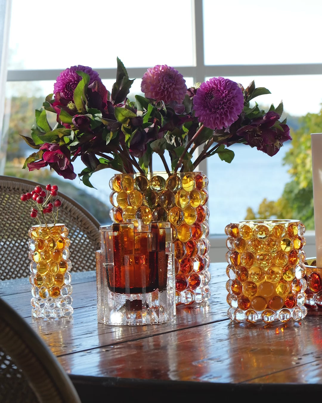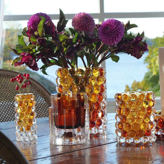 Boule Large är handblåst i landskapet Böhmen, där världens bästa glasblåsare finns. Bubblorna, skapade i en gjutjärnsform, ger Boule sitt unika optiska mönster och en lyxig tung känsla. Kombinera med de andra storlekarna i kollektionen och skapa en fantastisk dukning. Den kan även användas som en vacker vas för blommor.