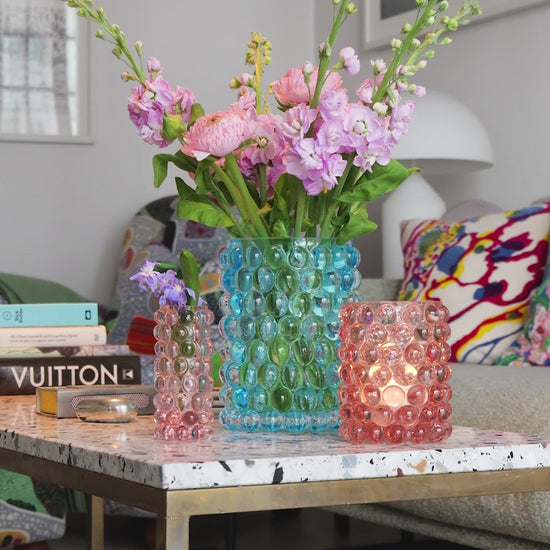 Boule Large är handblåst i landskapet Böhmen, där världens bästa glasblåsare finns. Bubblorna, skapade i en gjutjärnsform, ger Boule sitt unika optiska mönster och en lyxig tung känsla. Kombinera med de andra storlekarna i kollektionen och skapa en fantastisk dukning. Den kan även användas som en vacker vas för blommor.